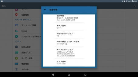 中身は Android 7.0 のタブレットの模様
